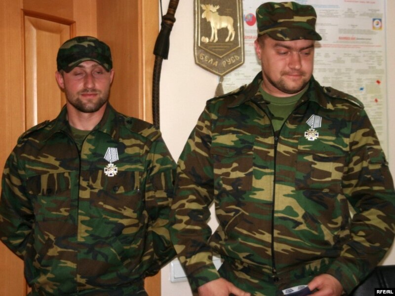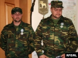 Нұрсұлтан Назарбаев атындағы Құрметті казак жүздігінің казактары Николай Винников (сол жақта) пен Максим Вагнер. Алматы, мамыр, 2010 жыл.