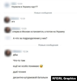 TikTok-тағы видеолардың біріне пікір жазған, Владивостокта тұратын қыз жігітінің "жаттығуға бара жатпағанына" сенімді. Азаттық радиосының қойған сұрағына ол жас жігітті "Украинаға" апара жатқанын айтып, мұндай ақпаратты қайдан алғанын нақтыламады. Одан кейін оның "десантты-щабуылдаушы батальонда" жұмыс істейтінін нақтылап, кейінгі хабарламаларында 155-теңіз жаяу әскер бригадасына кіретінін растады.